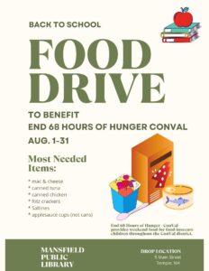Thanks so much to the Mansfield Public Library, Temple, NH for collecting food for End 68 Hours all this month! Published on August 15, 2024