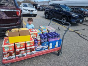 Our youngest volunteer with our monthly BJs trip. Financial donations can always be mailed to 62 Meadowbrook Drive Epping. Food donations can be dropped off at Service Credit Union in Epping.